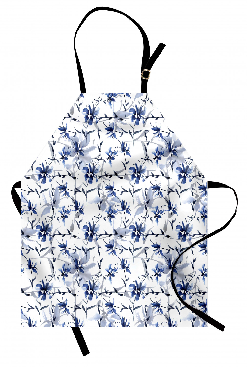 Japanese Apron Asian Japanese Ink Paint With Flourishing Flower Patterns Oriental Eastern Imagery Print Unisex Kitchen Bib Apron With Adjustable Neck For Cooking Baking Gardening Blue By Ambesonne Walmart Com